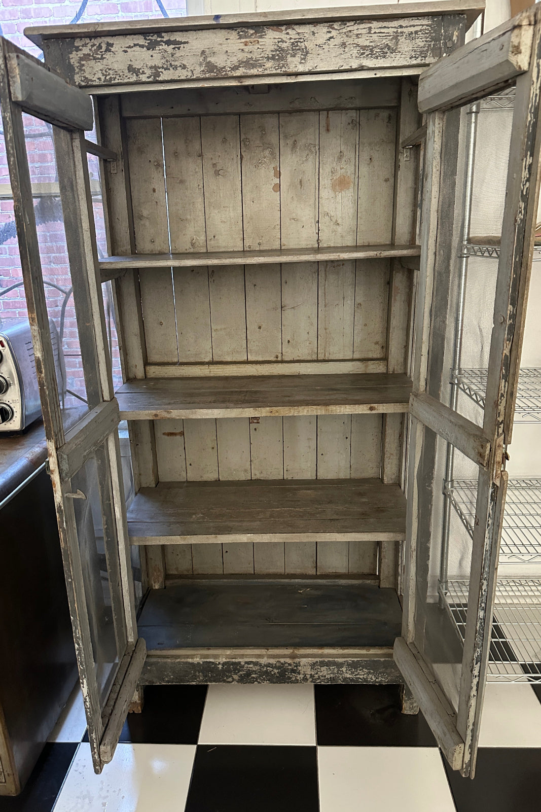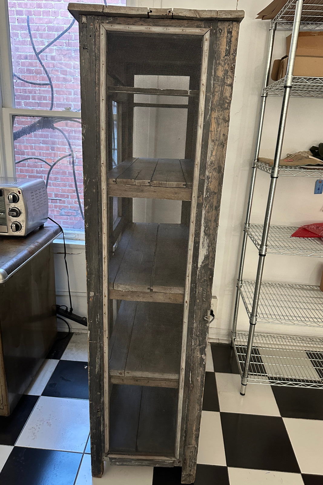 Vintage 1940's Food Storage Wood Cabinet/Hamper w/Wire Mesh Screen Doors